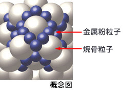 焼骨粉(リン酸カルシウム)と金属化合物粉末を合成加工処理することにより、数十ミクロンの合成ファインセラミックパウダーに生まれ変わります。
